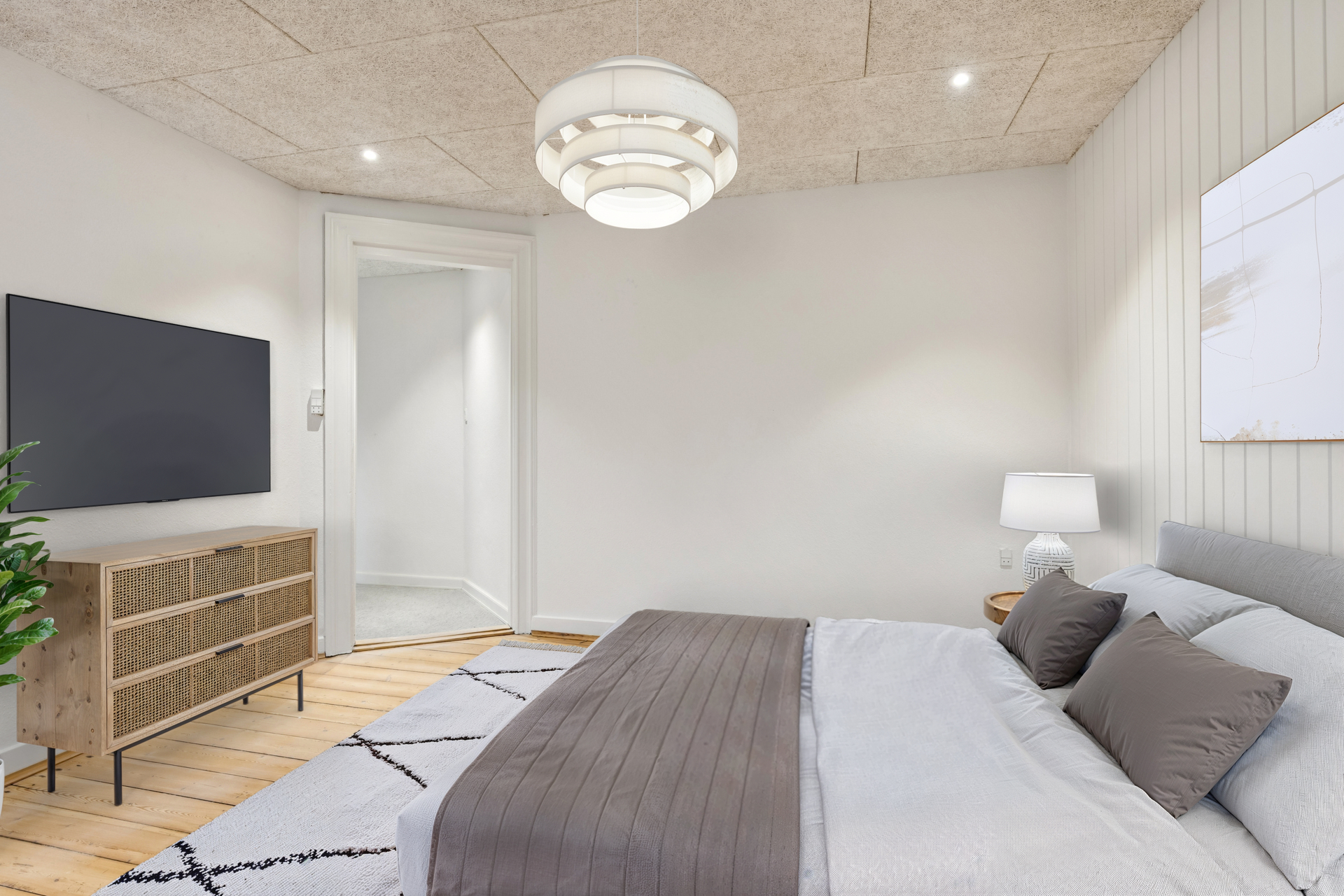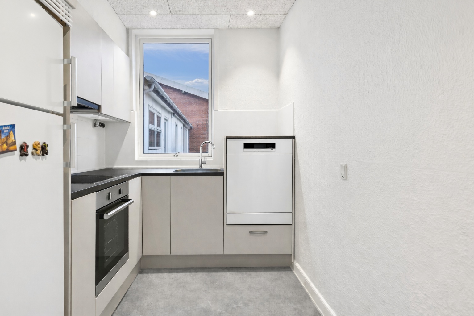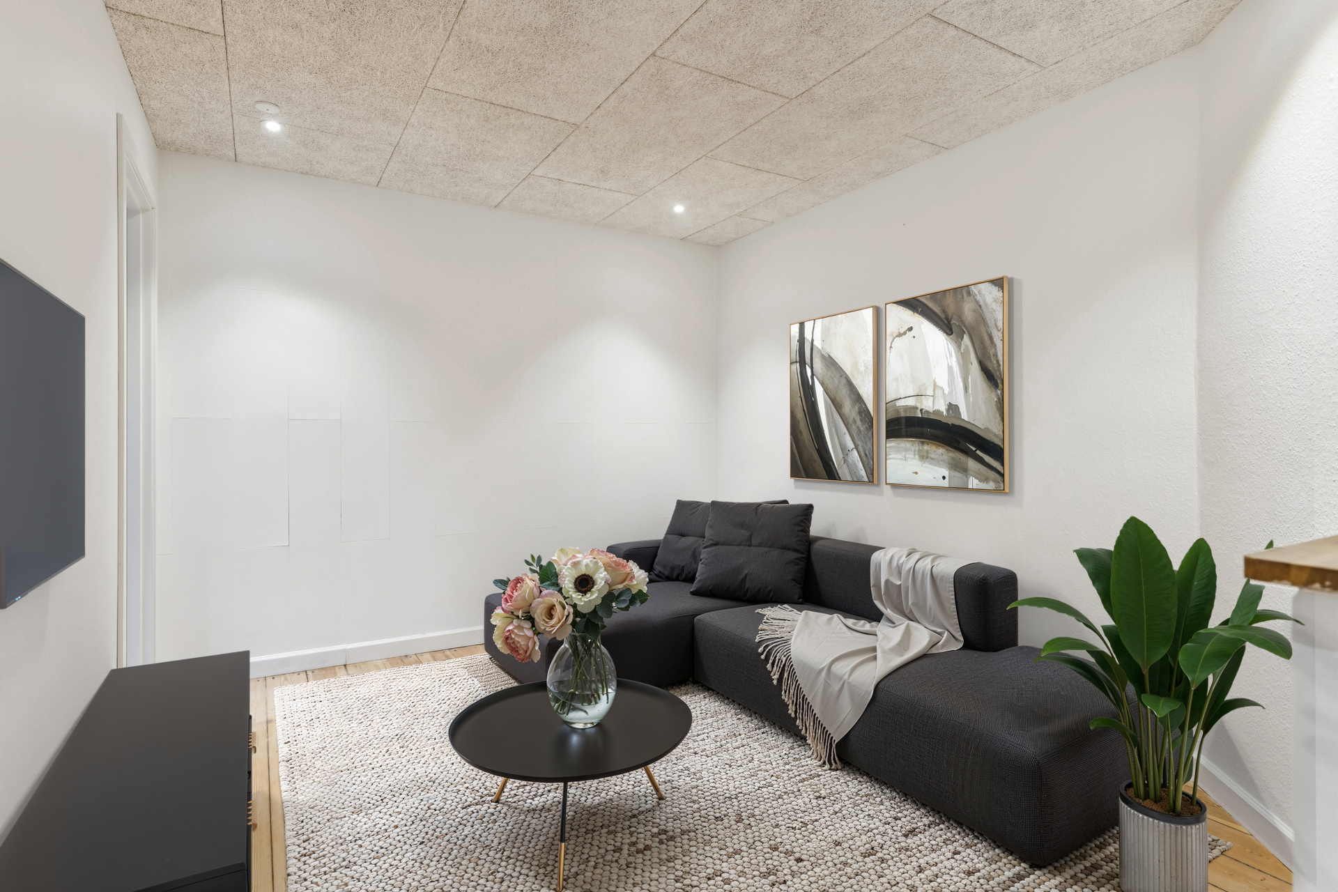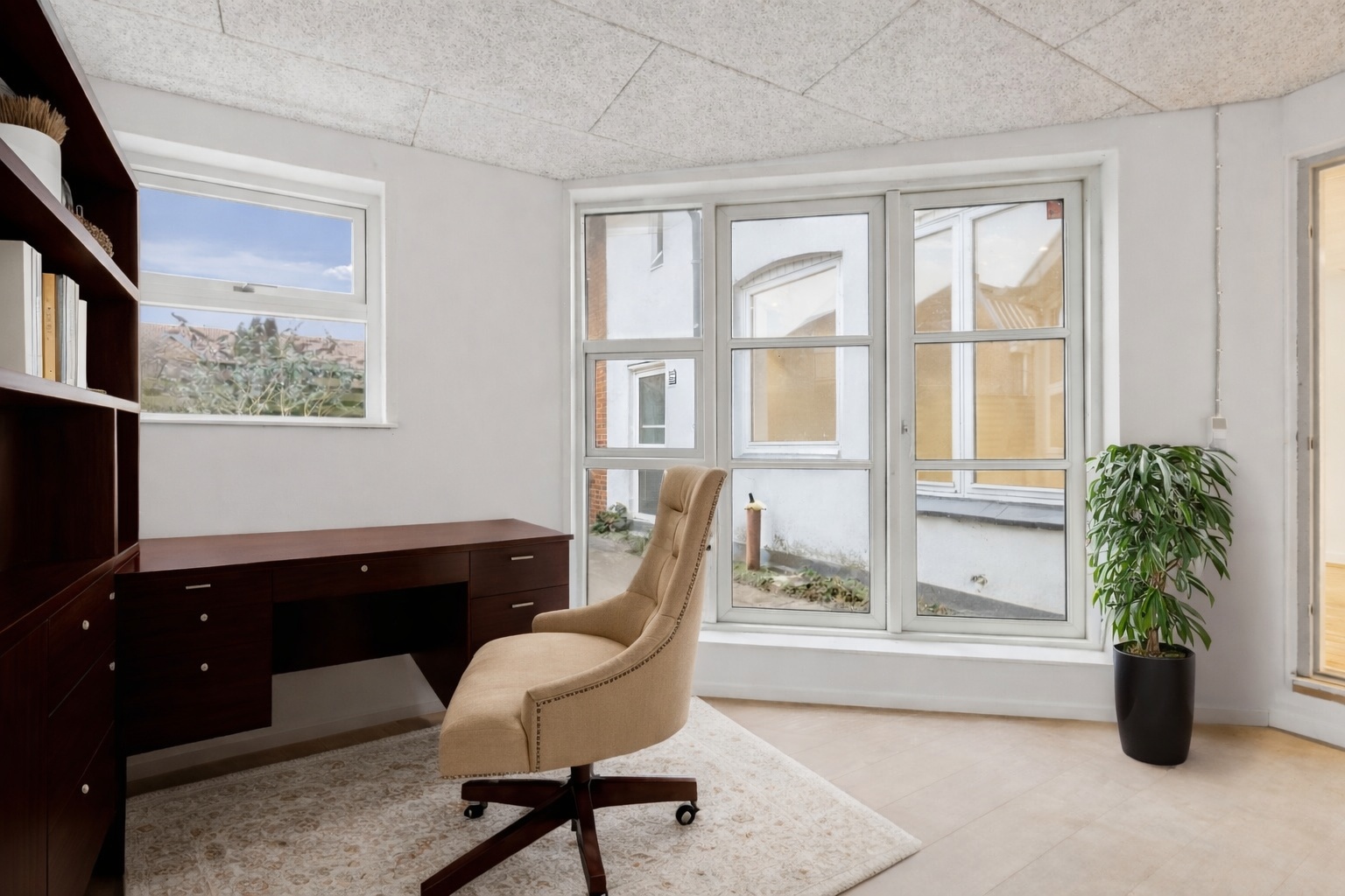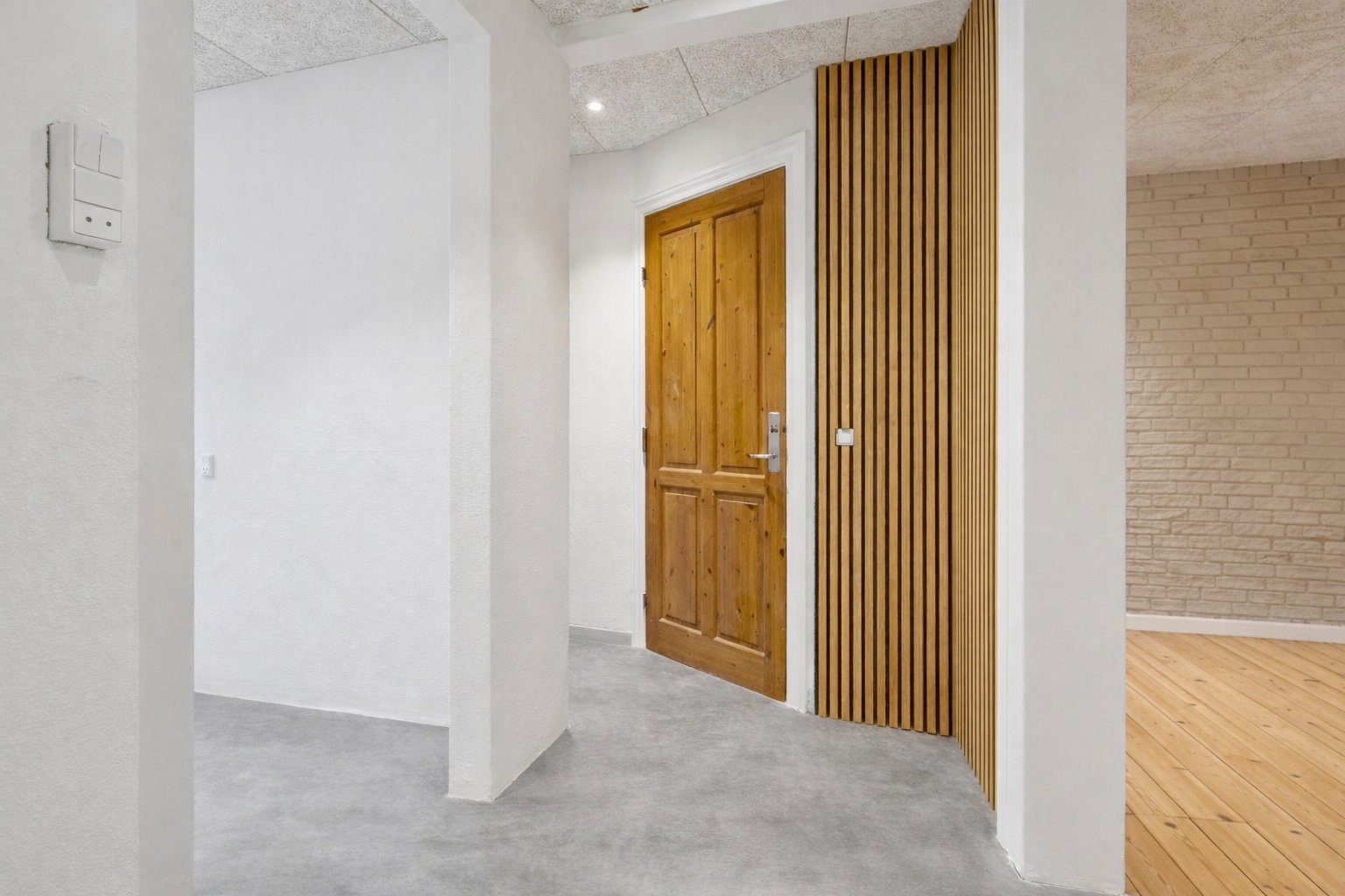 Flot og velindrettet stuelejlighed på hele 103m2 i en charmerende ejendom, gennemgribende renoveret og klar til indflytning. Lejligheden har lyse plankegulve og et behageligt lysindfald, som giver en let og indbydende atmosfære. Den rummelige stue har en flot, rå murstensvæg, der tilfører karakter, og boligen rummer derudover to værelser samt et ekstra disponibelt rum på 20m2, der kan bruges som kontor, walk-in, opbevaring eller andet. Køkkenet er moderniseret med nye hårde hvidevarer, herunder opvaskemaskine, og badeværelset fremstår moderne med bruseniche og vindue. Der er indbyggede spots i størstedelen af lejligheden, som giver et moderne udtryk. Lejligheden har eget bryggers med både vaskemaskine og tørretumbler. Fra boligen er der direkte udgang til terrasse og have med eget depotrum, hvilket giver en sjælden kombination af lejlighed og udeliv. Ejendommen fremstår meget velholdt, og acontobetalingerne er lave. Beliggenheden er central i Kolding med kort afstand til indkøb, offentlig transport og byens øvrige faciliteter. En ideel bolig for dig, der ønsker en moderne lejlighed med god plads og egen udgang til grønne omgivelser. Der er anvendt AI til møblering af billederne.
